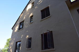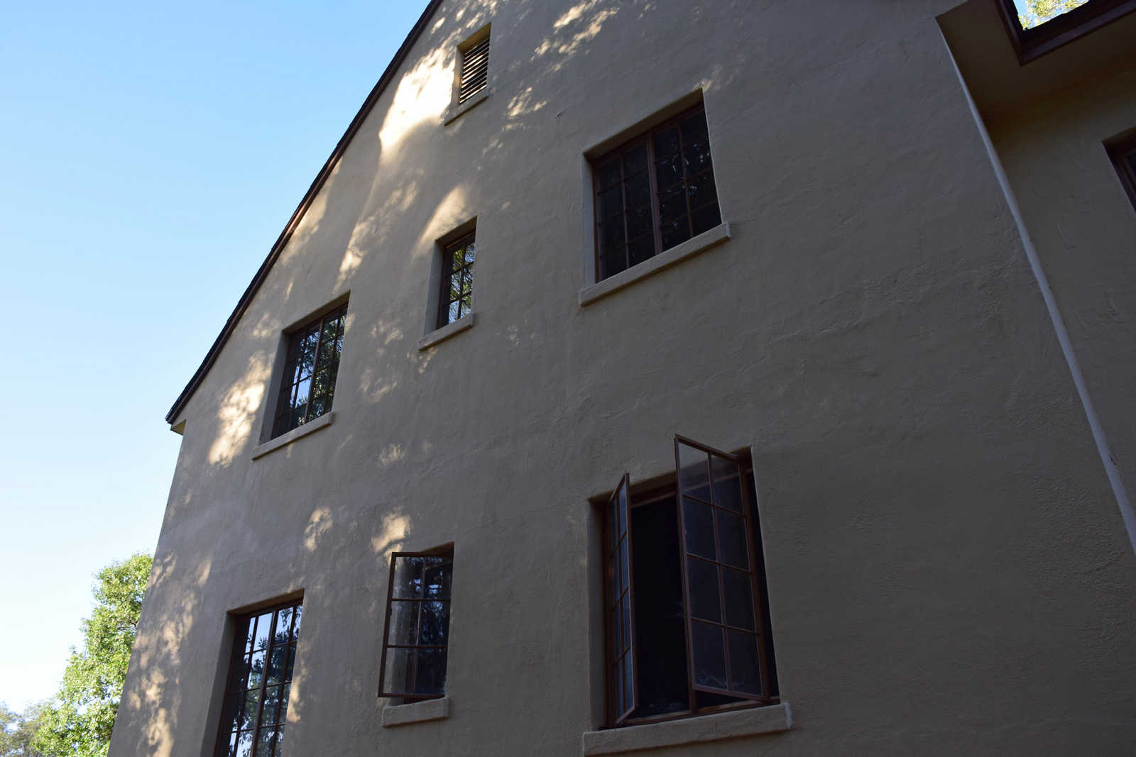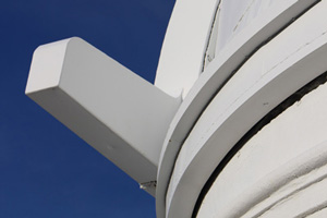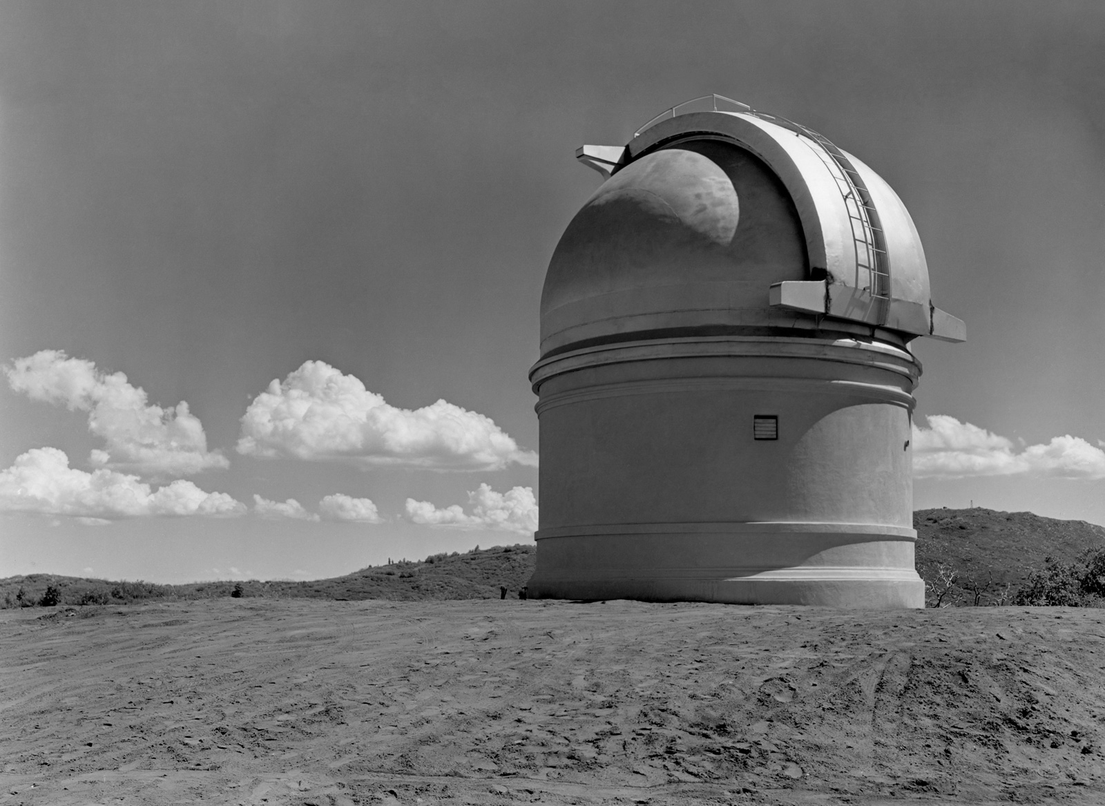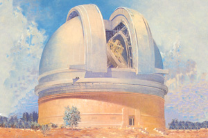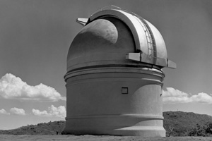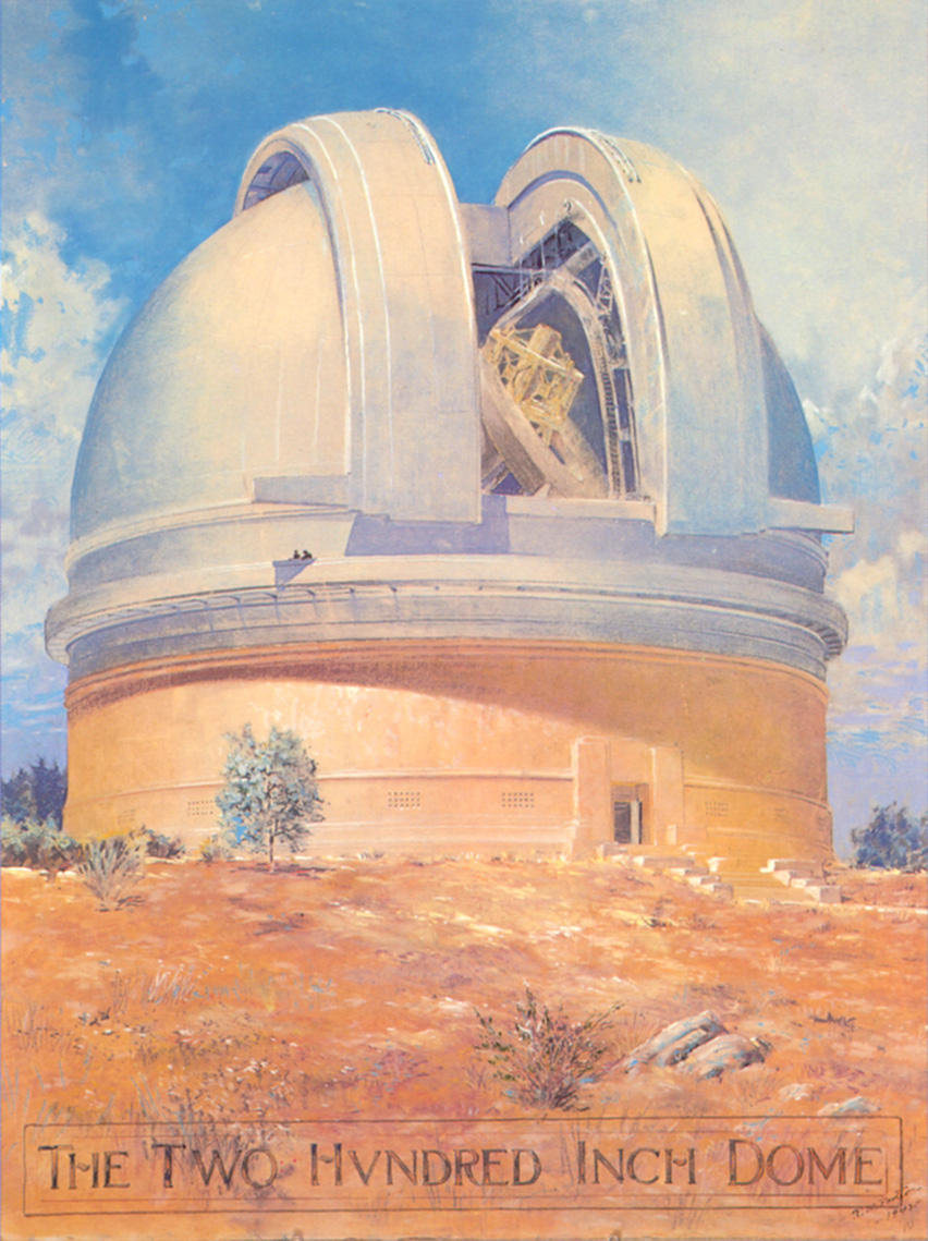 The Architecture of Palomar ObservatoryPalomar Observatory is rare among scientific facilities in that there is a very clear design thread running through all the Observatory buildings. This thread is due to the Observatory's chief architect, Russell W. Porter. One of Porter's many talents was architecture, in which he received formal education from the Massachusetts Institute of Technology (MIT). Palomar Observatory layout and building design was among Porter's primary assignments from George Hale after joining the 200-inch project in 1928. In 1935 Porter visited the Palomar site to survey the undeveloped plateau where the Observatory was to be constructed. During his stay, he developed a sense for the site topography, and how the various Observatory elements (telescopes, staff and astronomer housing, service facilities) would be positioned on the property. Back in Pasadena, he developed a site contour map to inform his site layout and architectural designs. Porter chose Art Deco as the architectural style for the Palomar buildings (along with the machine/instrument and optical shops at Caltech—the latter where the 200-inch primary mirror was figured). It is reasonable to assume that Porter was influenced in his choice of Art Deco by its prevalence in Southern California architecture in the 1920s and 30s. The Los Angeles area where Porter lived and worked had undergone a boom in Art Deco construction in that period, and the modernity and simplicity of more understated Art Deco influences must have appealed to Porter's architectural and engineering aesthetics. Further, Porter looked to distinguish the appearance of the Palomar designs relative to sister observatories such as Mt. Wilson, whose style he specifically called out as an unfavorable design contrast. In 1936 Porter wrote to the governing Observatory Council: Palomar architecture slideshow: 21 images. Click ► to start. Use < or > to reverse or advance one slide, or the progress dots to jump slides (this pauses the slideshow). Click any image to enlarge and on some captions for further context. Aside from the principle that a building should express the functions of the mechanism that it covers, […] I have felt the importance of expressing extreme simplicity along with the appearance of permanency. But Porter's tastes were understated, and he hoped to strike a more sober and (what he saw as) permanent tone in his designs (from the same letter): I wish to call the attention to the absence of superfluous decorations. Any attempt—to me—to embellish the wall surfaces with flutings, panels, medallions, etc. so prevalent at the present time, will be obsolete in fifty years […]. Apparently Porter's arguments held sway with the Council. The original three Palomar domes are simple and elegant. Despite the size of the Hale Telescope dome (it is as tall as a 12-story building), its balanced proportions—its width equal to its height—make it visually pleasing. Prominently sited at the center of the Palomar compound, the Hale dome naturally but understatedly dominates the site appearance. Both the Hale and 18-inch Schmidt telescope domes were constructed simultaneously in mid-to-late 1930s. While both shared common Art Deco design elements, they also had unique design proportions tailored to the instruments they contained. The Samuel Oschin Telescope dome was added slightly later (completed in 1939), and retains the same design elements expressed in a slightly different form. Other service buildings (the administrative offices and astronomer dormitory—the Monastery) similarly included understated Art Deco influences. Finally, the 60-inch telescope housed in the Oscar G. Mayer Memorial Building was added in the late 1960s, but remains true to Porter's unifying vision for the Observatory and its architecture. The evolution of Palomar's architecture is explored in detail in our digital exhibit Russell W. Porter at Caltech. References: