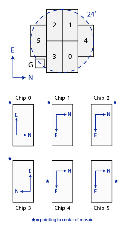 Mosaic of six 2048 × 4096 pixel SITe SI-002 thinned, backside illuminated,